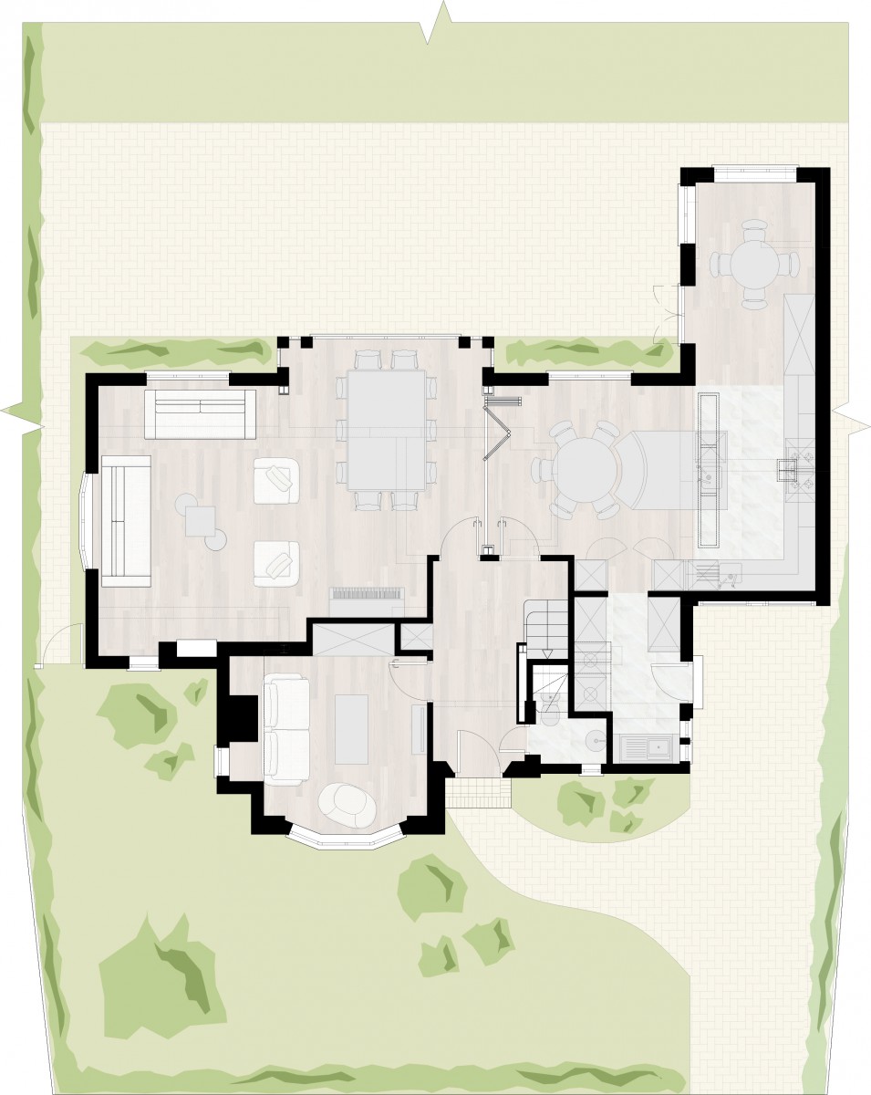 Due to the restricted rules of the conservation area, the project consist of the conversion of the garage into habitable space, including a small rear extension, and a loft conversion. The aim of the design is to enlarge the footprint whilst maintaining the integrity of the character externally and internally, yet accommodating open plan living areas.