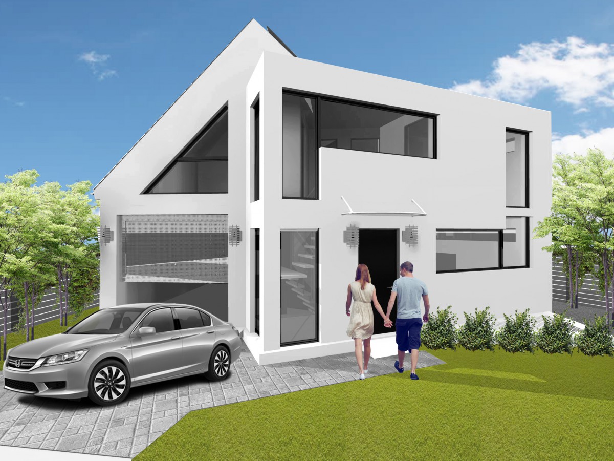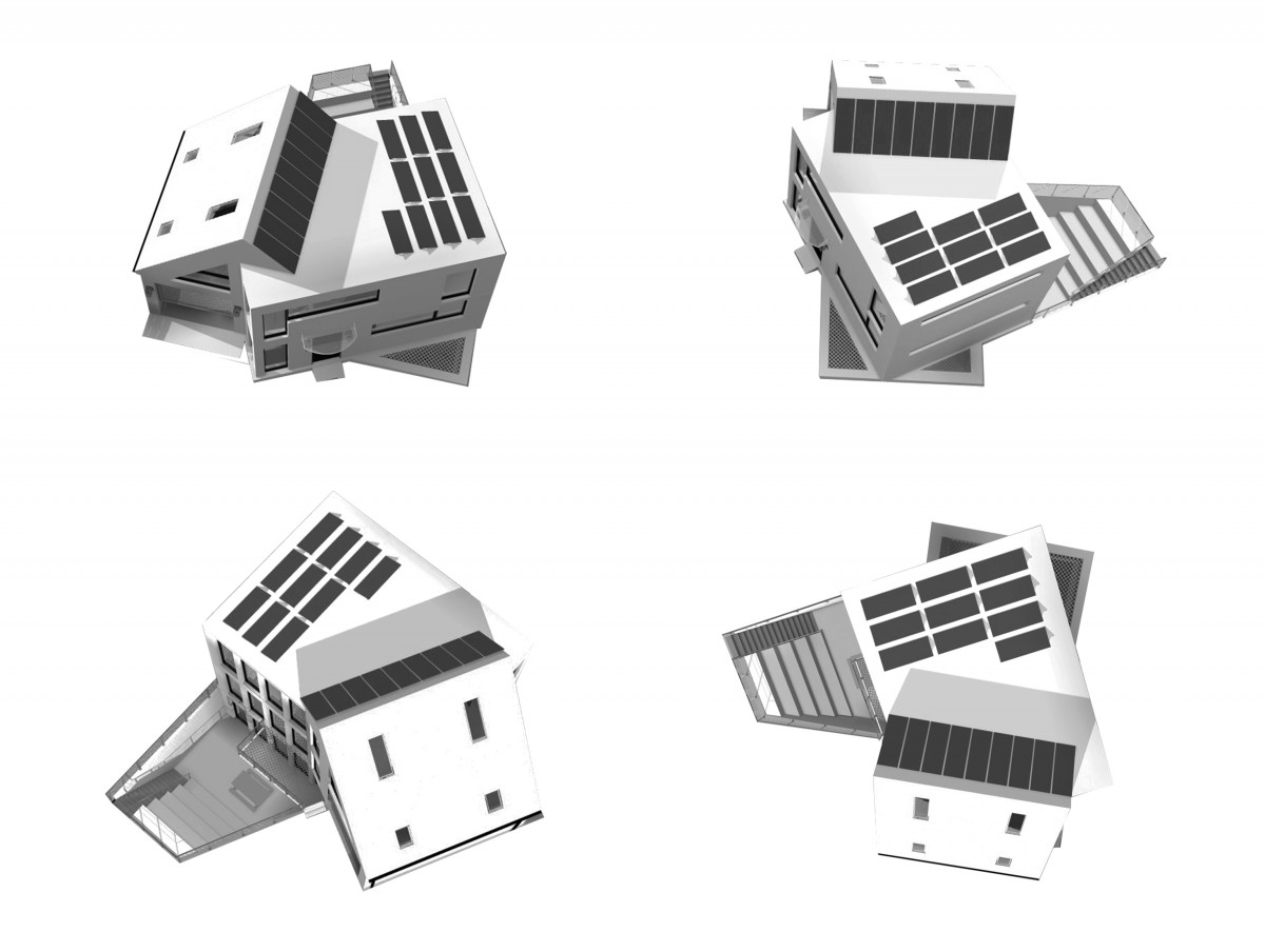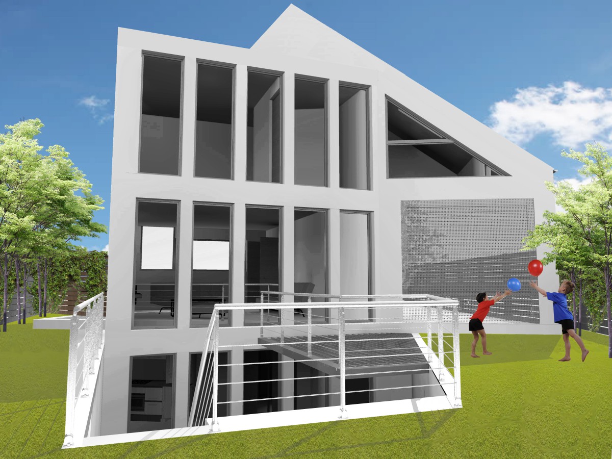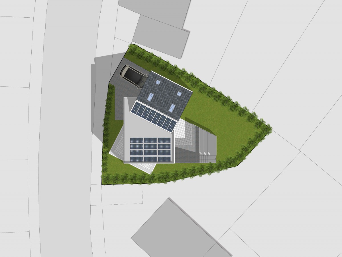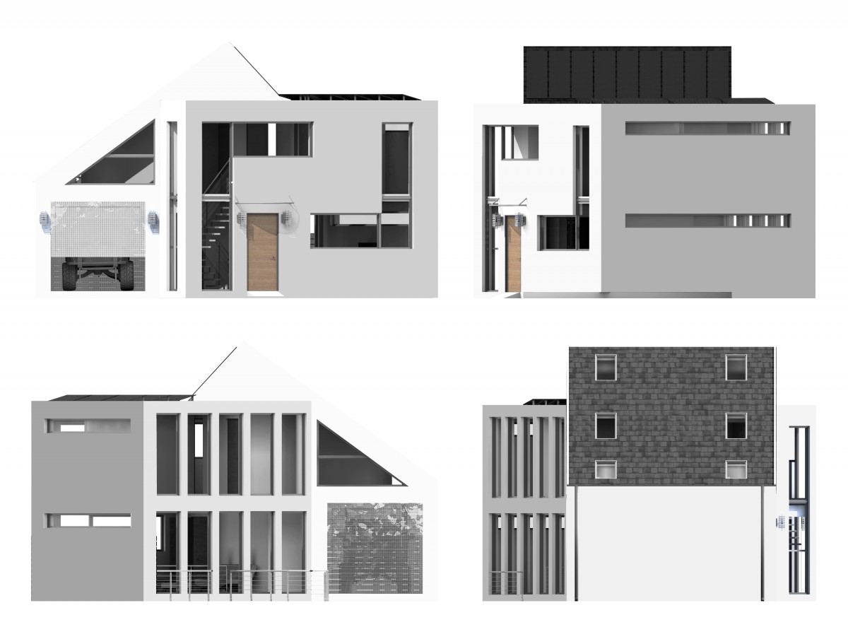The new dwelling house in consisting of a basement, ground and first floor. The proportions and volumetric composition was designed by using the exact proportions of the surrounding houses and that of a garage. The aim was to create a contemporary design but based on the volumetric existing local parameters yet composed in a non-traditional way.